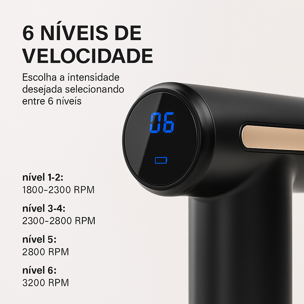 Desenvolvida com base na terapia percussiva usada por fisioterapeutas e atletas de alta competição, a Pistola de Massagem Muscular permite-te: