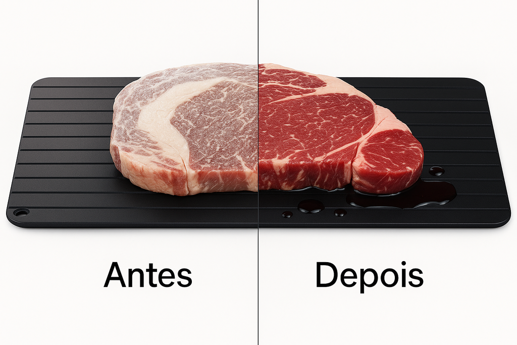 "Já imaginou tirar um bife do congelador e tê-lo pronto para cozinhar em Poucos minutos — sem micro-ondas, sem cozer nas pontas e com todo o sabor intacto?"